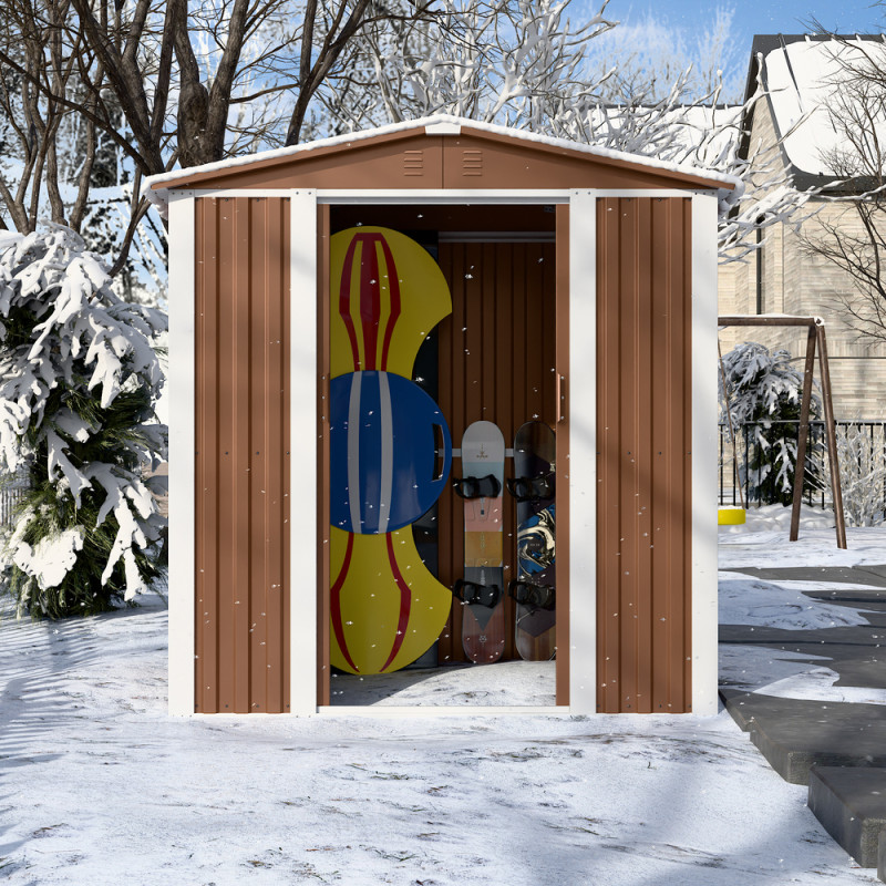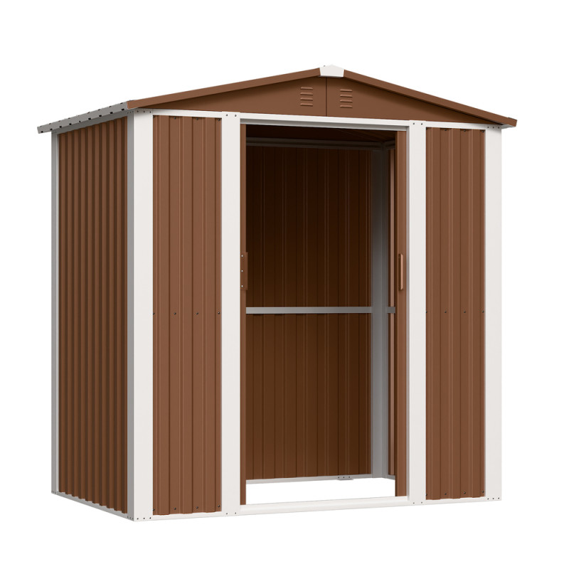 Наші вироби виготовлені із якісної оцинкованої сталі, стійкої до корозії. Лакофарбове покриття стійке до сонячних променів і відшаровування. Ця модель пропонується зі зсувними (як шафа-купе) дверима з ручками під навісний замок. Дах похилий двосхилий. У нижній частині каркаса передбачені отвори для кріплення анкерами/шпильками виробу до настилу/фундаменту.