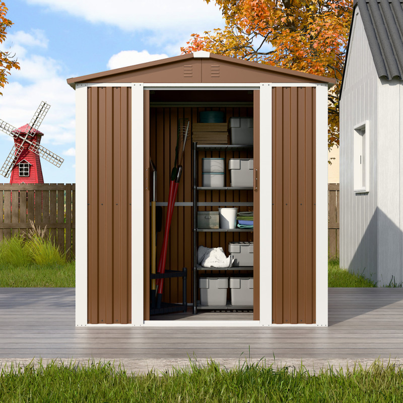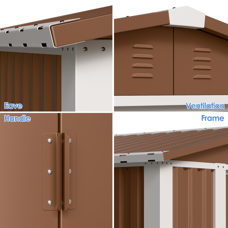 - Профлист - високоякісна оцинкована сталь - Каркас і двері - холоднокатана сталь - Товщина: зашивки 0.35-0.45 мм, каркас 1.0-1.2 мм - Колір павільйону: коричневий - Покриття: епоксидно-порошкове полімерне