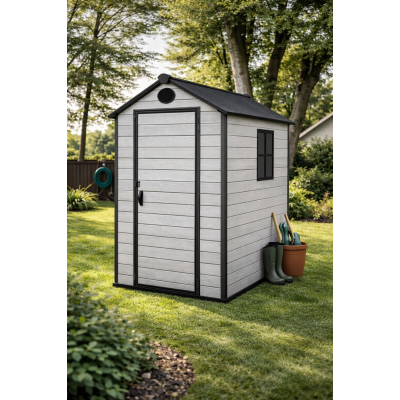 Надійний і компактний пластиковий хозблок — ідеальне рішення для зберігання садового інвентарю, інструментів та господарських речей. Сучасний дизайн під дерево гармонійно впишеться у будь-який двір або дачну ділянку.