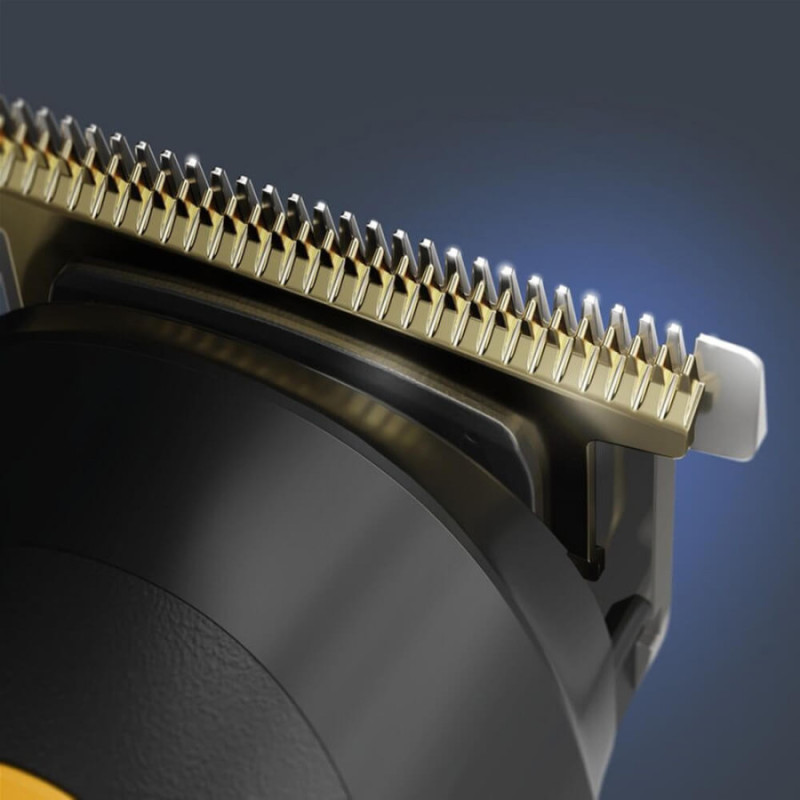 Самозаточувальні леза з титановим покриттям у три рази міцніші за нержавіючу сталь, що гарантує довговічну гостроту та бездоганний результат. Потужний роторний мотор зі швидкістю 6500 об/хв забезпечує стабільну ефективність під час будь-якого типу стрижки. Літій-іонний акумулятор працює до 120 хвилин без підзарядки, а повна зарядка триває лише 90 хвилин. Завдяки технології Wet&Dry тример можна безпечно використовувати під душем і легко очищати під струменем води.