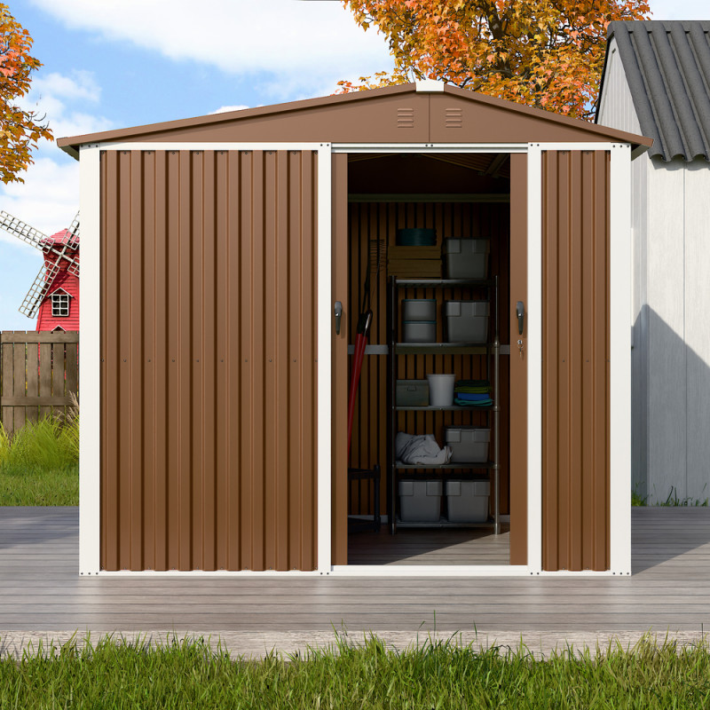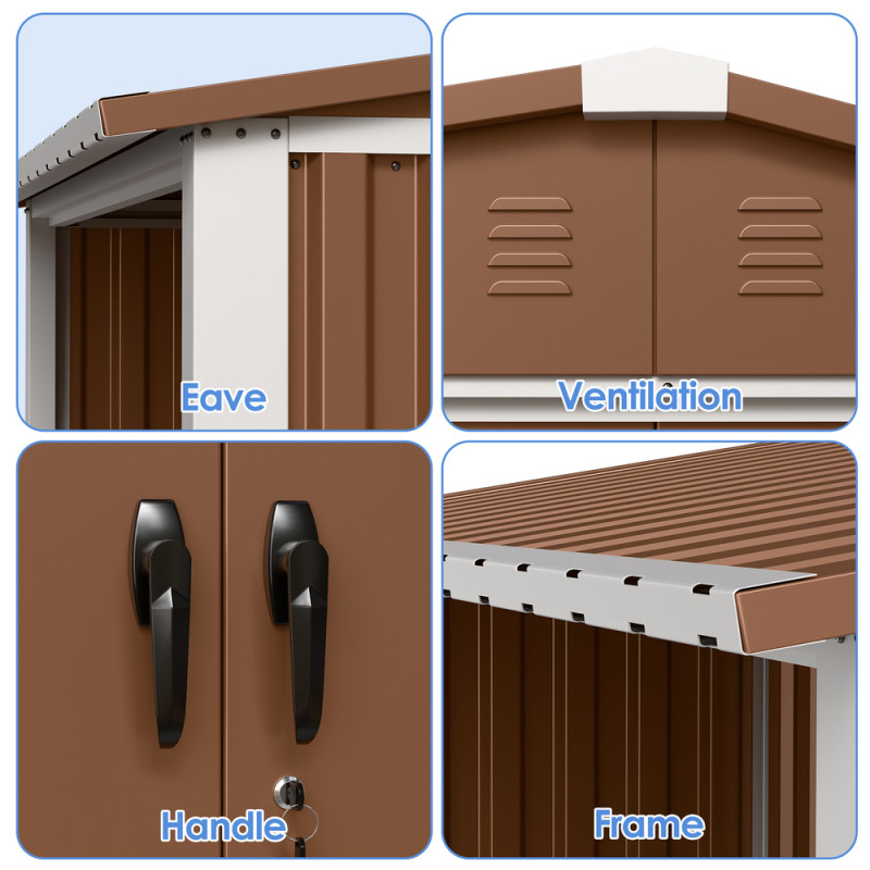 Коричневый цвет делает конструкцию универсальной – сарай гармонично сочетается как с деревянными, так и с каменными постройками, а также природным ландшафтом. Это не только функциональное помещение, но и эстетический элемент вашего участка.
