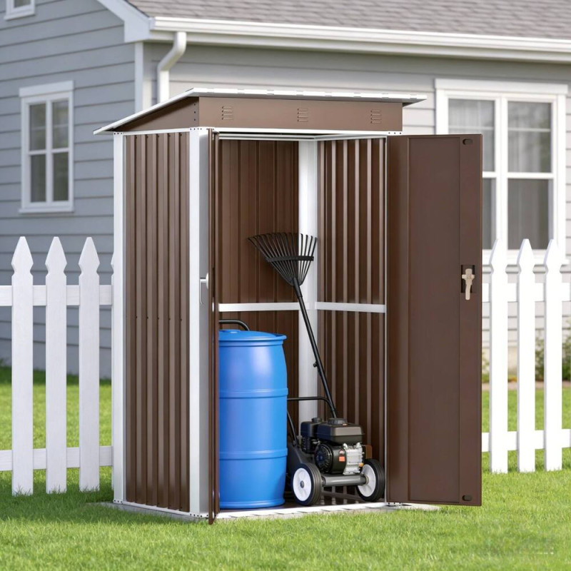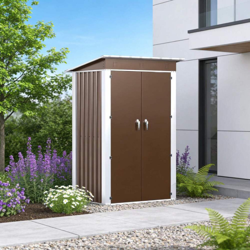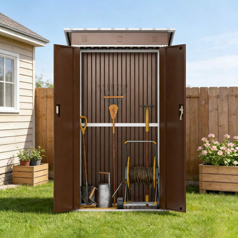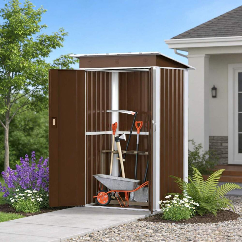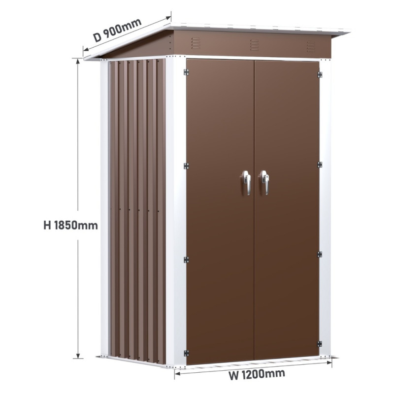 Металлический садовый хозблок-сарай SS-03 в коричневом цвете с односкатной крышей – практичное решение для организации пространства на приусадебном участке, даче или возле частного дома. Конструкция изготовлена из оцинкованной стали с антикоррозионным покрытием, что обеспечивает длительный срок эксплуатации, стойкость к влаге, перепадам температур и воздействию ультрафиолета.