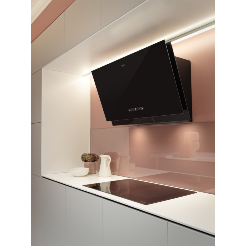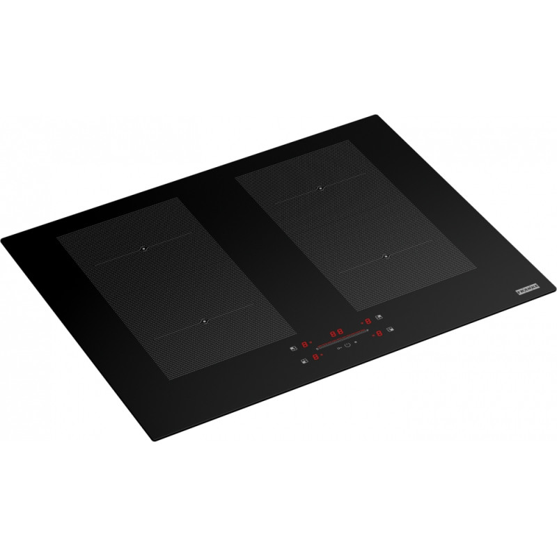 Індукційна варильна поверхня з можливістю бездротового керування витяжкою та чотирма високоефективними прямокутними зонами нагріву Flexi. Технологія K-Link дозволяє з’єднати варильну поверхню з певною витяжкою та дозволяє регулювати її швидкість та режим роботи залежно від вибраної потужності під час приготування. Коли вмикається варильна поверхня – вона відразу подає сигнал витяжці і там вмикається освітлення. Після активації зон нагрівання витяжка увімкнеться на відповідну швидкість. Після вимкнення варильної поверхні витяжка працюватиме ще 15 хвилин. Функції варильної поверхні дозволяють об’єднати дві сусідні зони в одну велику прямокутну та керувати нею спільно. Сенсорне слайдерне керування максимально інтуїтивне та зручне. Для зміни режиму роботи необхідно просто вибрати зону нагріву та провести праворуч або ліворуч на сенсорній панелі. Світлова індикація підкаже наступні дії, оскільки дисплей має два рівні яскравості та анімацію.