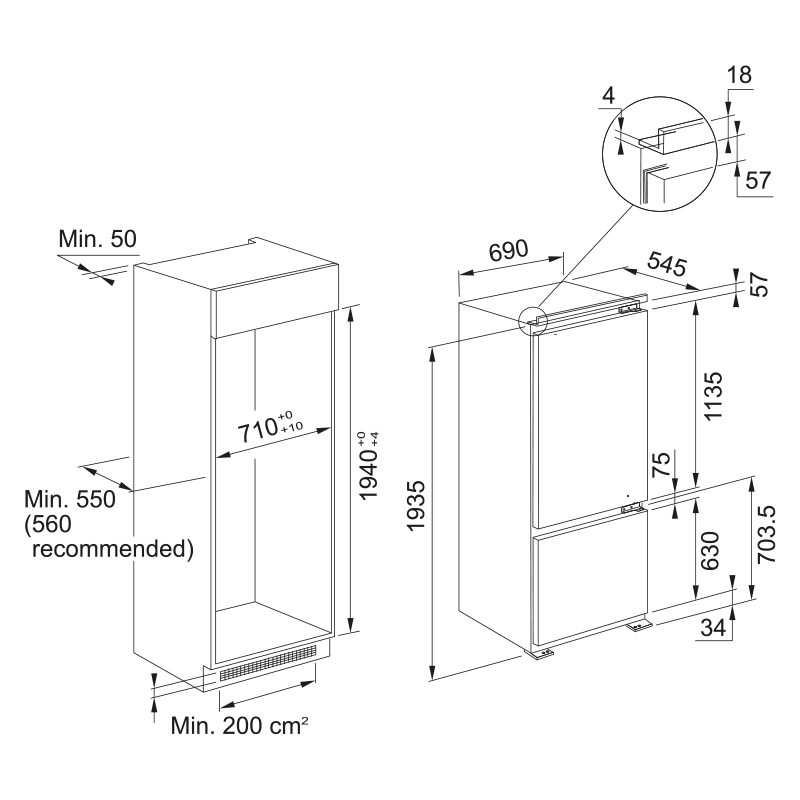 ТипВбудований комбі холодильникОб’єм морозильної камери101 лОб’єм холодильної камери299 лЗагальний об’єм400 лТип керуванняЕлектронний з дисплеємПетліПравосторонні з можливістю перенавішуванняТип кріпленняСлайдерВентиляторТакРівень шуму35 дБКліматичний класSN-TТип компресораІнверторнийКлас енергозбереженняE (New Energy Label) (А++)Технологія No FrostТакРозморожування морозильної камериРучнаЗміна температури у холодильній камеріТак (8°С – 2°С)Зміна температури у морозильній камеріТак (-16 ° С – -24 ° С)Функція швидкого заморожуванняТакФункція швидкого охолодженняТакРежим ВідпусткаТакСигнал відчинених дверейТакГрати для пляшокТакЗона Cold ZoneТакЗона Fresh ZoneТакОсвітлення5 x LEDКількість ящиків морозильної камери3Кількість полиць холодильної камери3+ полиця для пляшокВисота1935 ммШирина690 ммГлибина545Гарантія2 рокиКраїна виробництваІталія
