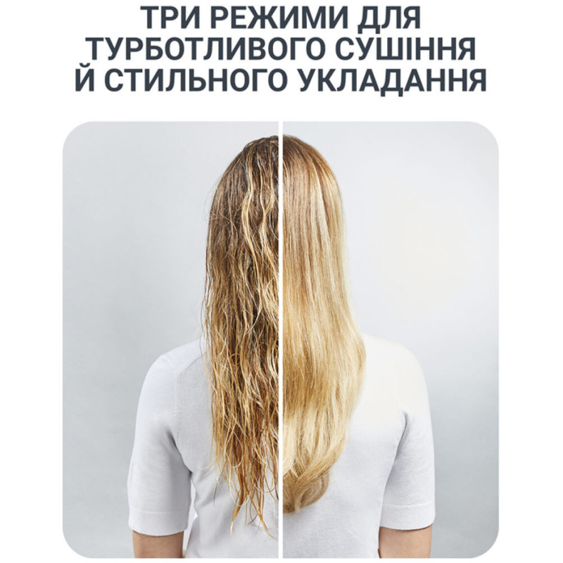 Три регулируемых режима температуры и воздуха обеспечивают максимальную эффективность: умеренная температура и поток воздуха подходят для влажных волос, щетина нагретая до 160 °C с подачей горячего воздуха оптимальна для слегка подсушенных волос, а щетина до 210 °C без подачи воздуха позволяет выравнивать сухие волосы и корректировать прическу.