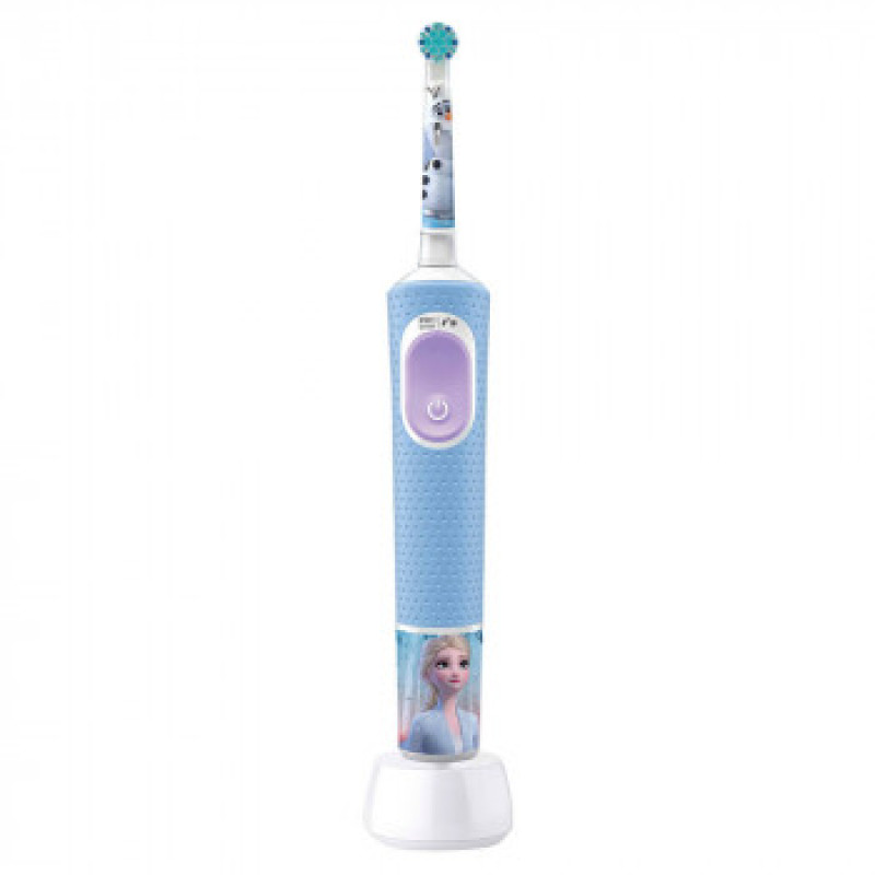 Зубная щетка Braun Oral-B Kids Frozen D103.413.2KX Special Edition. 2D-технология чистки зубов (совершает возвратно-вращательные движения, тщательное удаление налета с каждого зуба). Режимы чистки: 2 (ежедневный, деликатный). Профессиональный 2-минутный таймер (4 по 30 секунд). Количество насадок: 1 («Kids Frozen» EB 10 – для молочных зубов). Дорожный футляр. Влагоустойчивый корпус. Прорезиненная ручка. Бесконтактная зарядка. Система питания: аккумулятор. Для детей возрастом от 3 лет. Совместима со всеми насадками для зубных щеток Oral-B серии «EB» и «OD».