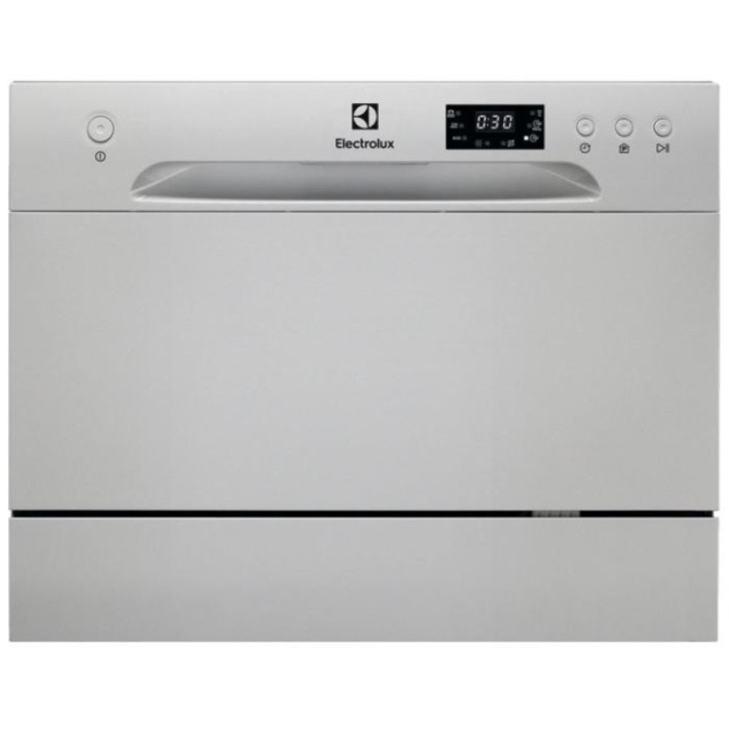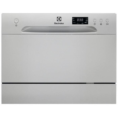 Посудомоечная машина Electrolux ESF2400OS изготовлена в серебристом цвете и представляет собой компактную модель высотой 43,8 см класса энергопотребления А+. Максимальная рекомендованная загрузка на один цикл составляет 6 стандартных комплектов посуды, на мытьё которой потребуется около 6,5 литров воды. Для размещения загрязнённой посуды имеется большая корзина и маленькая корзинка, предназначенная для столовых приборов и мелких кухонных принадлежностей. Аппарат оснащен 6 встроенными программами, работающими в 4 температурных режимах, благодаря чему пользователь может выбрать оптимальную для каждой конкретной загрузки. Чтобы качественно очистить посуду с засохшими пищевыми остатками, следует воспользоваться функцией предварительного замачивания. Посудомоечная машина Electrolux ESF2400OS управляется механическими кнопками, а на внешнем дисплее отображается время до завершения программы и индикация наличия соли и ополаскивателя.