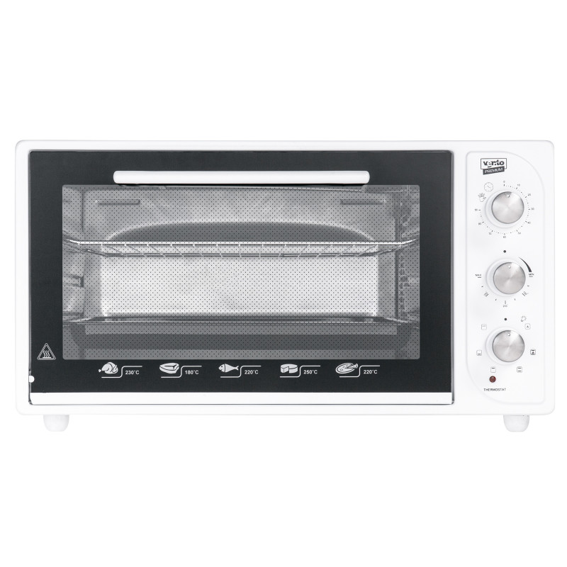 Электрическая печь NIKA 45 (WH) 2G Почему растет популярность настольных электродуховок? Они имеют компактные размеры, мобильные, хорошо справляются с выпеканием и обладают привлекательной ценой.. Отдав небольшие деньги, если сравнивать со встроенной духовкой, у Вас есть компактная печь с идентичным функционалом. Как результат, новая мини-печь NIKA 45 (WH) 2G – лучший выбор для любителей приготовления и ценителей стильного дизайна.. Настольные духовки NIKA 45 (WH) 2G – печь, которая отлично жжет и имеет минимальный нагрев стекла! Минидуховка NIKA 45 (WH) 2G оснащена 6 разными программами, которые позволяют запекать курицу, рыбу, делать выпечку, готовить пиццу и т.д.. д. Объём - 45 литров, поэтому можете не беспокоиться, этой крохи вполне достаточно для приготовления полноценного блюда на всю семью.. Отдельно акцентируем внимание на том, что это одна из немногих моделей настольных печей на рынке Украины, которые поставляются с двойным жаропрочным стеклом.. Как результат, при приготовлении пищи дверца техники нагревается значительно меньше.. Настольные духовые шкафы NIKA 45 (WH) 2G имеют следующие параметры: Современный дизайн. Модель выполнена из белой эмали, потому подойдет почти под любой интерьер.. Компактные габариты, а также печка достаточно мобильная, поэтому ее можно взять с собой на дачу или загородный дом.. Дверца оснащена двойным стеклом.. Выделены 6 программ для приготовления. В печке NIKA 45 (WH) 2G реализована конвекция. Объем – 45 литров. Гарантия – 3 года. Дверца оснащена надежным направляющим, который не позволяет ей самовольно закрыться в момент, когда Вы достаете блюдо или проверяете его готовность.. Важным моментом является и то, что нагревательные элементы (тены) сделаны из нержавеющей стали, а нижний тен спрятан за эмалью. За счет этого тени не окисляются, а также в них не проваливаются остатки пищи, которые в дальнейшем обгорают и создают неприятный запах.. Камера печи имеет объем 45 литров, а также обшита эмалью.. Для очистки камеры достаточно регулярно выполнять протирание влажной губкой и раз в 1-2 месяца очищать печку путем отпаривания.. ХАРАКТЕРИСТИКИ: Тип - электропечи Цвет - белый Материал - эмаль Конвекция - есть Объем, л - 45 Программатор - механический Стекла в дверце, кол-во - 2 Макс. температура, °С – 50-250 Макс. мощность, Вт - 1500 Энергопотребление - А Система очистки - эмаль легкой очистки Программ, кол-во - 6-конвекция, верхний + нижний нагрев + конвекция, верхний + нижний нагрев, верхний нагрев, традиционное приготовление, гриль В комплекте: решетка, прямоугольная , круглый противень Питание, В - 220-240 Автоотключение - есть Внутренняя подсветка - есть Звуковой сигнал - есть Особенности: уплотнитель стеклянной дверцы, защитный крепеж из металла для стекла, широкое 2 слойное термостекло, плотное крепление нагревательных элементов, нагревательные элементы из нержавеющей стали механизм легкой съемки дверцы, индикатор работы, индикатор термостата, автовыключение Таймер, мин. - 90 Функции приготовления - выпечка, запекание, разморозка Вес, кг - 13,7 Вес в упаковке, кг - 15 Габарит. размеры (В*Ш*Г), мм – 340*608*460 Размеры упаковки (В*Ш*Г), мм – 665*485*380.