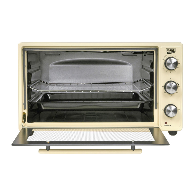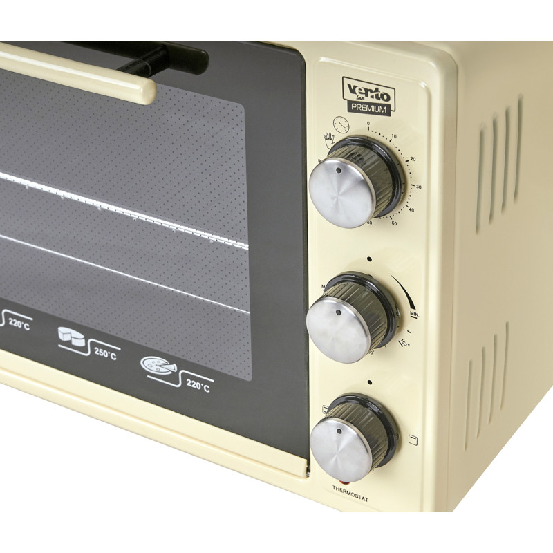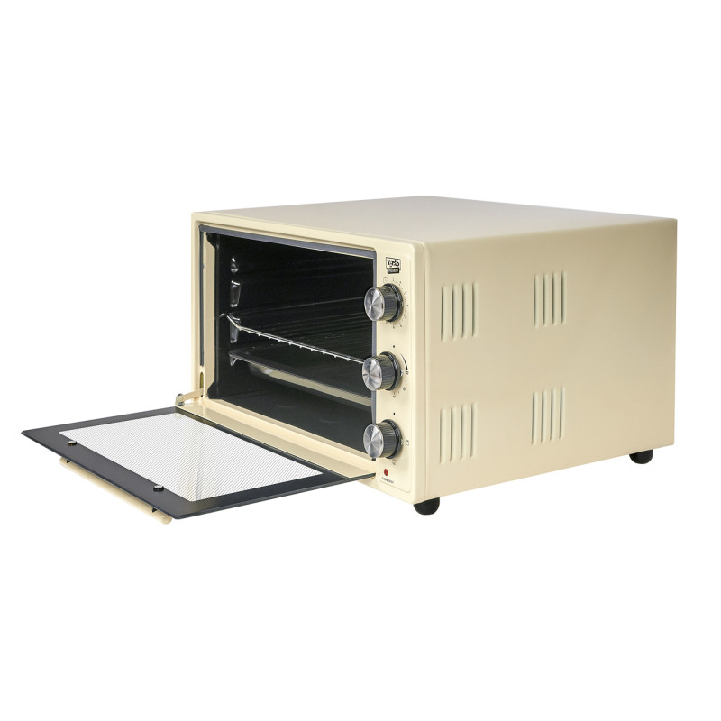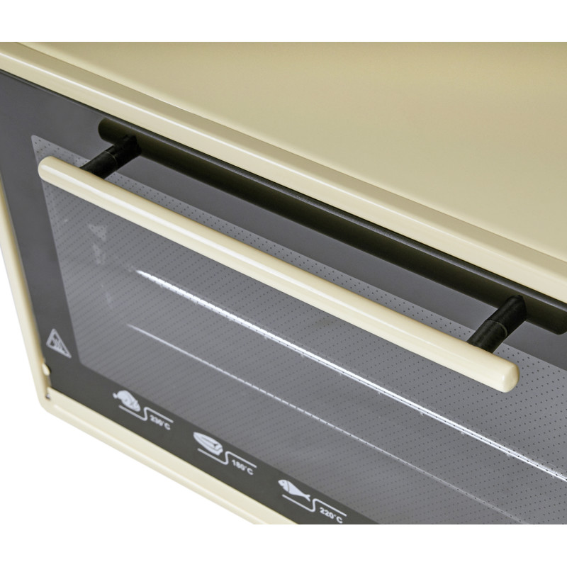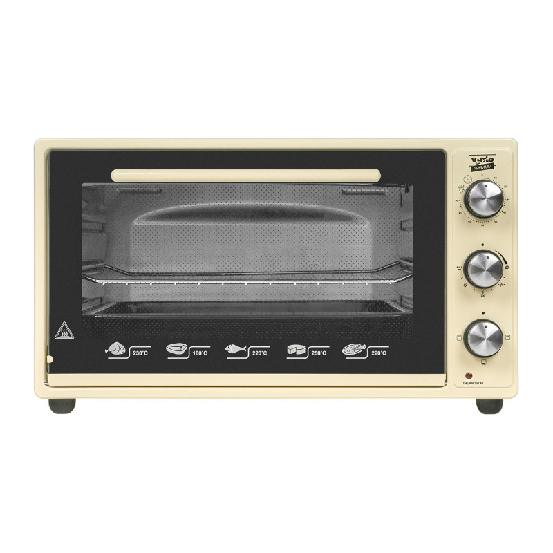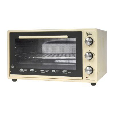 Настольная печь SOFIA Модель SOFIA отличается своей доступной ценой, ведь торговая марка Ventolux специально разрабатывала недорогую и качественную настольную духовку, которая будет доступна каждой украинской семье.. В отличие от других моделей, мини-печь SOFIA имеет классический кремовый цвет.. Настольная печь SOFIA: надежная и доступная помощница для каждой хозяйки! Эта модель оборудована стандартными режимами приготовления, которые могут использоваться индивидуально верхней или нижней тени или их комбинации.. Также механический таймер самостоятельно отключит технику по истечении выбранного времени.. Для любителей техники в других цветах, эта модель есть в белом и серебристом цветах.. Особенности настольной мини-печи София: Приятный кремовый цвет. Надежные и удобные ручки управления. 3 режима приготовления. Нижний нагревательный элемент закрыт, что не позволяет остаткам пищи провалиться туда.. Наиболее доступная цена в этом сегменте. В комплекте с техникой идет решетка гриль и два противня разных форм. ХАРАКТЕРИСТИКИ: Тип -электропечи Цвет-кремовый Материал - эмаль Конвекция - нет Объем, л - 36 Программатор - механический Стекла в дверце, кол-во - 1 Макс. температура, °С -50-250 Макс. мощность, Вт - 1300 Энергопотребление - А Система очистки - эмаль легкой очистки Программ, кол-во - 3-верхний и нижний нагрев, верхний нагрев, нижний нагрев В комплекте - решетка-гриль, прямоугольный противень, круглый противень Питание, В - 220 Автоотключ - есть Внутренняя подсветка - нет Звуковой сигнал - есть Особенности: уплотнитель стеклянной дверцы, защитный крепеж из металла для стекла, плотный крепеж нагревательных элементов, нагревательные элементы из нержавеющей стали, механизм легкой съемки дверцы, индикатор работы, индикатор термостата, автовыключение Таймер, мин. - 90 Функции приготовления - выпечка, гриль, запекание Вес, кг - 13,3 Вес в упаковке, кг - 14,1 Габарит. размеры (В*Ш*Г), мм – 270x500x400 Размеры упаковки (В*Ш*Г), мм – 315x525x460.