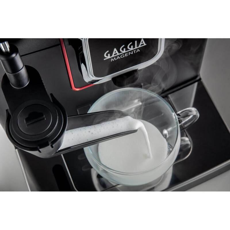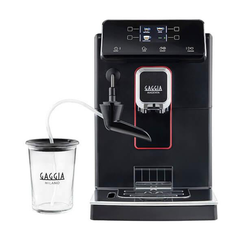 Кофеварка GAGGIA MAGENTA MILK BLACK 100% спроектировано и сделано в Италии. Гарантия высшего качества и выражение бесконечной страсти к искусству приготовления эспрессо. Чрезвычайно простой в использовании, новый интерфейс с полноцветным экраном имеет сенсорные кнопки для удобного пользования. Поднос для эспрессо из нержавеющей стали обеспечивает правильную высоту для приготовления безупречного эспрессо в любое время. Приготовьте для себя 9 доступных напитков: ристретто, эспрессо, лунго, кофе американо, капучино, кофе с молоком, вспененное молоко и горячая вода. CAPPINCUP И НОВЫЙ ГРАФИН Инновационное решение для вспенивания молока в одно касание, это возможно теперь с новым внешним стеклянным графином для молока. Благодаря плавному дизайну, четким линиям он прост в использовании, эффективен и гигиеничен. Кроме того, после использования его можно хранить в холодильнике и мыть в посудомоечной машине. ФУНКЦИЯ ОПТИАРОМА дает вам уникальную возможность регулировать интенсивность аромата и создавать напитки на основе кофе, выбирая количество молотого кофе в чашку из 5 вариантов. ФУНКЦИЯ ПРЕДВАРИТЕЛЬНОГО ЗАВАРИВАНИЯ уникальный состав и вкус каждого эспрессо благодаря предварительному завариванию, который подразумевает паузу в несколько секунд между первым завариванием и последующим приготовлением. ВАРИАНТ МОЛОТОГО КОФЕ Помимо кофейных зерен, это простое решение для приготовления различных смесей молотого кофе, даже без кофеина.