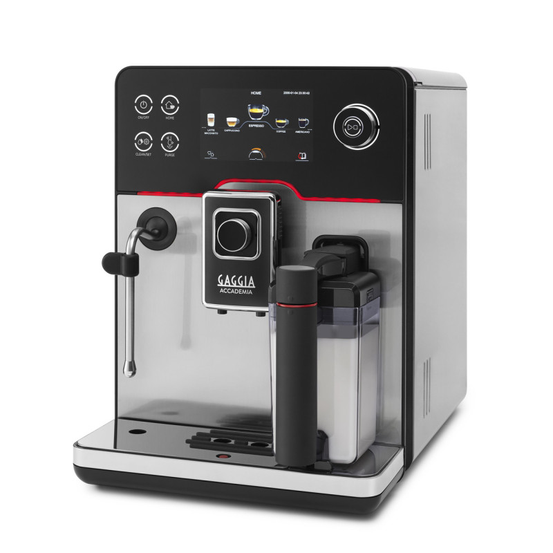 Новинка 2023 года, автоматическая кофемашина премиум-класса GAGGIA NEW ACCADEMIA На 100% разработана и произведена в Италии. Итальянский мастерский дизайн и технологии. Gaggia Accademia использует такие материалы высшего качества, как нержавеющая сталь, металл Zama и черное зеркальное стекло. Обогащен деталями премиум-класса, такими как красная линия с подсветкой или драгоценная текстура поворотных ручек, и имеет оптимальную площадь основания. 5-дюймовый полноцветный сенсорный экран с 3D иконками и кнопками с подсветкой обладает повышенной чувствительностью, что гарантирует максимальное удобство работы. Прокручивайте и пролистывайте меню, нажимайте и выбирайте напитки или управляемые процедуры точным и простым способом. Благодаря сенсорной клавиатуре вы даже можете переименовать свои напитки по своему усмотрению. Компактный, эргономичный и простой в обращении молочный графин. Профессиональный паровой стимер выполнен из нержавеющей стали с правильным дизайном и размерами для профессианального приготовления молочной пены с идеальной текстурой для латте-арта и приятным сладким вкусом Прочный корпус из нержавеющей окрашенной стали обеспечивает долгий срок службы кофемашины Эффективный подогреватель чашек с таймером для активации до 4 раз в день подогрева чашек в любое время. Попробуйте 19 традиционных и современных напитков со всего мира: RISTRETTO, ESPRESSO, ESPRESSO LUNGO, COFFEE, AMERICANO, CAPPUCCINO XL, CAFFÈLATTE, CAFÈ AU LAIT, CAPPUCCINO, MACCHIATONE, MELANGE, CAFÈ CORTADO, FLAT WHITE, LATTE MACCHIATO, FROTHED MILK, HOT MILK, HOT WATER, BLACK TEA,GREEN TEA. Настройте свои рецепты до мельчайших деталей и сохраните их в одном из 4 доступных профилей пользователей, чтобы каждый день получать напитки по вашему индивидуальному рецепту одним нажатием кнопки. Высочайшая свобода выбора в кратчайшие сроки. Станьте домашним бариста будущего. Интерфейс : Полноцветный сенсорный дисплей, емкостные кнопки и поворотные регуляторы с подсветкой Дисплей : Полноценный сенсорный 5-дюймовый дисплей Количество доступных языков : 21 Разнообразие напитков : 19 напитков + пар для латте-арта Профили : 4 Функция памятки : Через профили, сохранение объема при заваривании Молочное решение : Встроенный графин; профессиональная паровая насадка Зазор между носиками для кофе : 7,5 см — 16,5 см (без съемной части) Подогрев чашек : Активный, с таймером пробуждения Керамическая кофемолка : ✔ (8 уровней) Настройка аромата : 5 настроек + Coffee Boost (для более насыщенного кофе (≥ 50 мл) ) Количество напитков : 19 напитков + пар для латте-арта Давление насоса : 15 бар Предварительное настаивание : ✔ (3 уровня) Настройка температуры : ✔ (3 уровня) Регулируемый объем напитка : ✔ для кофе, молока, воды Регулируемая громкость во время заваривания ✔ Функция «На лету Регулируемый уровень пены ✔ (4 уровня) Объем резервуара для воды :1,6 l Объем молочного графина : 0,6 l Объем для кофейных зерен : 350 g Контейнер для отработанного кофе: 14 порций Приборная панель состояния машины : ✔ Единицы измерения : мл — унция Настройка времени работы в режиме ожидания : ✔ регулируемая (с возможностью установки режима ECO MODE) Установка даты и часов : ✔ Сброс к заводским настройкам : ✔ Настройка жесткости воды : ✔ Тип фильтра для воды Совместим с Intenza+ Циклы очистки молочного контура : Быстрая очистка, Глубокая очистка, Гигиена паром Цикл удаления накипи : ✔ автоматический Продувка парового стимера : ✔ с помощью прямой кно