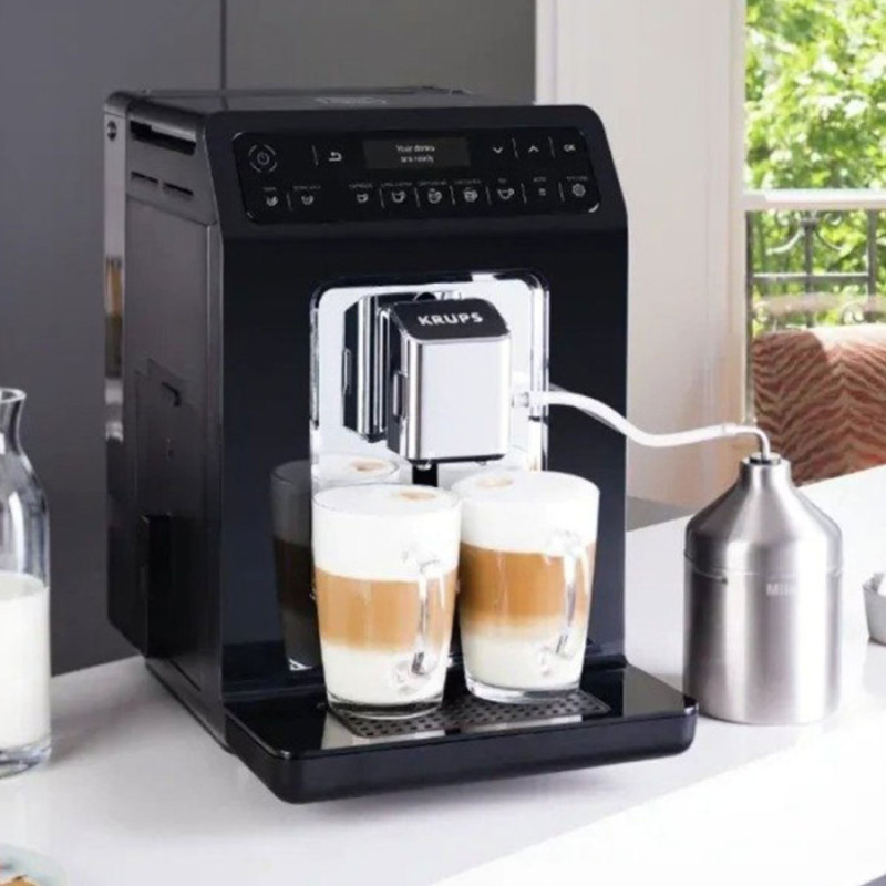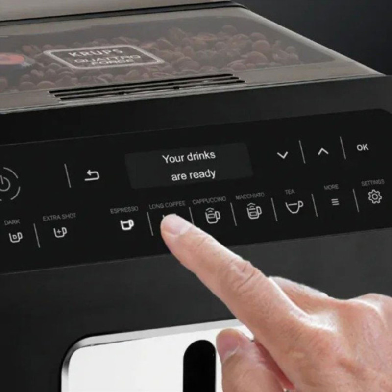 Тип кофеварка Тип приготовления автоматическое Используемый кофе в зернах Количество чашек, шт 2 Объем резервуара 2.3 л Мощность 1450 Вт Давление 15 бар Встроенная кофемолка Функции автоотключение, регулировка прочности кофе, автоматическая промывка системы, 3 настройки уровня прочности, 3 уровня регулировки температуры кофе, регулировка температуры, регулировка степени молоты, Extra shot, функция дополнительной порции эспрессо Цвет черный Особенности съемный поддон для капель, система KRUPS Quattro Force, съемный капучинатор, подача горячей воды для чая, система One-Touch-Cappuccino