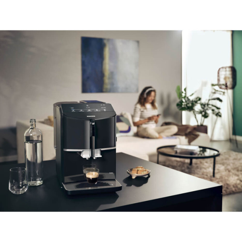 Компактный размер (38,3х25,1х43,3 см), лаконичный черный дизайн и высокий уровень автоматизации делают Siemens TF301E19 идеальным выбором для настоящих ценителей качественного кофе.