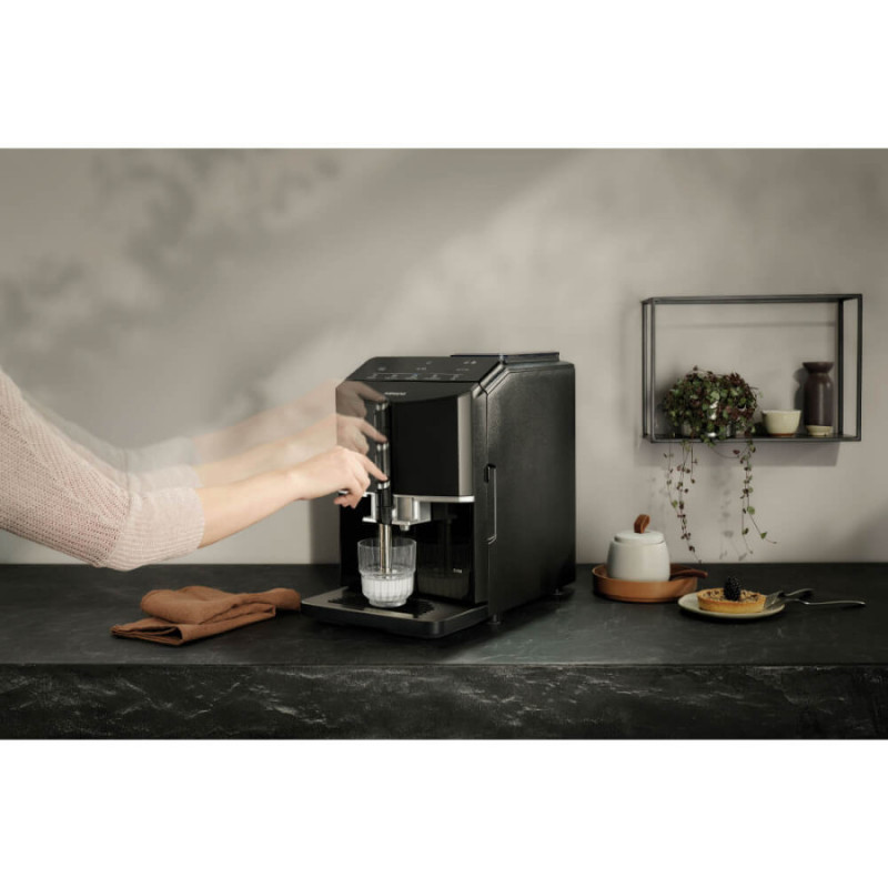 Siemens TF301E19 предназначена для комфорта. Сенсорное управление и функция oneTouch позволяют приготовить любимый напиток одним нажатием. Высоту дозатора можно регулировать до 13 см, что подходит даже для высоких бокалов лате-макиато. Кофемашина предлагает пять запрограммированных напитков: кофе, капучино, лате-макиато, горячее молоко, а также позволяет индивидуально настраивать крепость и объем напитка.