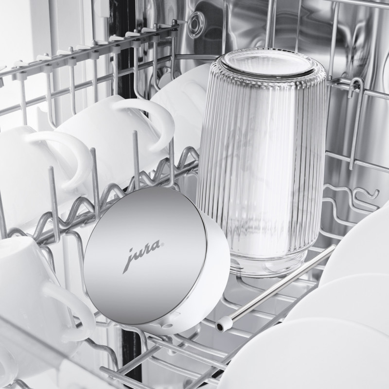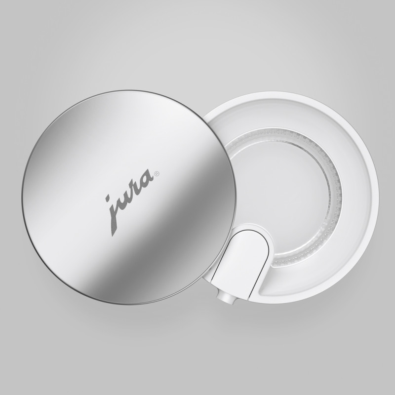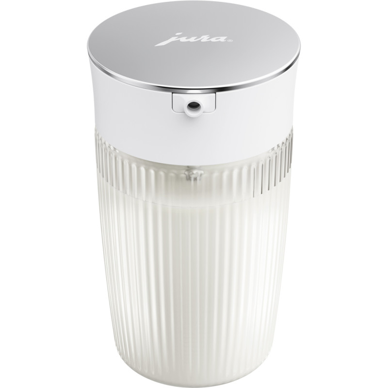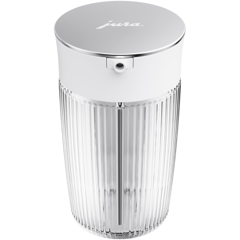 Изысканный, практичный, гигиенический. Графин для молока - стильное дополнение к автоматическим кофеваркам JURA, незаменимое для тех, кто не прочь побаловать себя фирменным кофе с молоком или его разновидностью.. Благодаря ребристой поверхности графин для молока привлекает внимание и обеспечивает удобный захват.. Он также демонстрирует свою функциональную и эстетическую сторону во время наполнения, благодаря поворотной крышке. Благодаря двум сменным силиконовым адаптерам графин для молока обеспечивает практическую и четкую маркировку молочных альтернатив и благодаря своему размеру подходит для любого холодильника.. Исключительно практически. Стильная крышка предоставляет графину для молока практичности.. Поворотная крышка из полированной нержавеющей стали обеспечивает простое и гигиеническое наполнение молоком или его заменителями.. Высококачественное стекло. Изготовлен из боросиликатного стекла, графин для молока устойчив к перепадам температур и царапинам.. Он подходит для гигиенической очистки в посудомоечной машине, защищает молоко и молочные заменители от посторонних запахов и сохраняет их свежесть.. Благодаря толстому основанию графин устойчив на любой поверхности, а его ребристая поверхность придает ему особо элегантный вид.. Подходит для любой молочной альтернативы. Коровье молоко или овсяный напиток? Благодаря входящим в комплект силиконовым адаптерам вы можете четко указать, для чего предназначен графин с молоком: стильный и практичный, в белом и черном цветах, где нет места двусмысленности.. Красивый и изысканный. Обладая дизайном JURA, графин для молока покоряет людей своим холодным скандинавским шармом.. Благодаря чистым и четким линиям он остается верен своей функции и является элегантным аксессуаром для повседневной кухни.. .