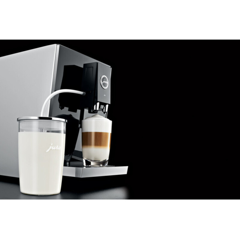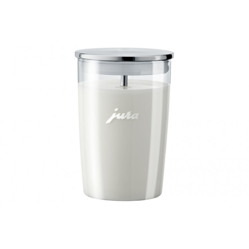 Идеальная практичность. Стеклянный контейнер для молока является незаменимым идеальным дополнением для всех любителей кофе, которые время от времени желают угостить свою семью и гостей изысканным флэт уайт, лате маккиато или капучино.. Прекрасно сочетается с концепцией дизайна JURA, он может удобно храниться в холодильнике и при необходимости подключаться к кофе-машине.. Насадка для молока имеет идеальную высоту подключения, в результате чего выполняется легкое всасывание и вспенивание молока в любое время.. Емкость контейнера составляет 0,5 литра, его можно мыть в посудомоечной машине.. Быстро и просто к идеальному вкусу кофе. К приготовлению можно приступать сразу после присоединения молочного шланга к крышке.. Благодаря простым вставным соединениям обеспечивается полная чистота пути прохождения молока. Чаще загрязненная наружная часть молочного шланга никогда напрямую не контактирует с молоком. Высококачественные и абсолютно гигиенические материалы. Благодаря тому, что стеклянная емкость и трубка для подачи молока из высококачественной стали не влияют на вкусовые характеристики молока, они оптимально подходят для его хранения.. Простота хранения. Стеклянный контейнер для молока очень удобен и легко помещается в дверь холодильника.. Простота очищения. Простота и удобство очистки стекла и высококачественной стали достигаются благодаря их гладкой поверхности и пригодности для мытья в посудомоечных машинах.. .