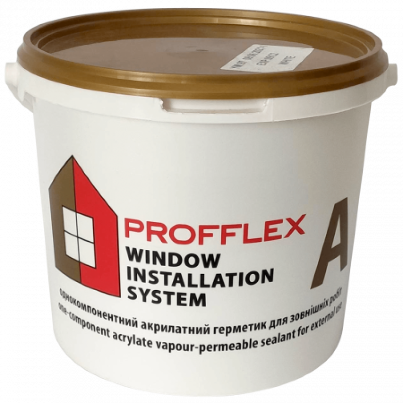 Profflex A — готовый к применению, однокомпонентный, паропроницаемый, акрилатный герметик белого цвета, который предназначен для устройства наружного слоя монтажного шва оконного блока. Profflex A используют в процессе строительства и ремонта жилых, промышленных зданий и сооружений, а также при индивидуальном жилищном строительстве и ремонте. Имеет пастообразную консистенцию, отверждается за счет испарения воды, образуя резиноподобный материал. Герметик- это надежная защита окна от разрушений и ухудшения внешнего вида, так как пены впитывают в себя воду и разрушаются под действием света, из-за чего происходит нарушение теплоизоляционных режимов монтажного шва. Герметик обладает хорошей адгезией к таким материалам: дерево, бетон, кирпич, штукатурка, ПВХ, алюминий. Герметик применяют при: заделке трещин и отверстий внутри помещения; герметизации стыков элементов стен (межблочные, межпанельные и т.п); герметизации примыканий дверных и оконных коробок во время монтажа и ремонта. Преимущества: готов к применению; высокая паропроницаемость; возможна поверхностная окраска; может применятся на неровных поверхностях; устойчив к воздействию УФ и деформациям; высокая адгезия к поверхности различных материалов; безопасен для внутренних работ; сохраняет свои свойства в течении 20-ти лет эксплуатации. Ограничение: не разбавлять материал водой; не наносить герметик во время осадков (дождь, снег); не допускать контакт герметика с водой до образования поверхностной пленки; не применять герметик в закрытых помещениях с влажностью более 90%.