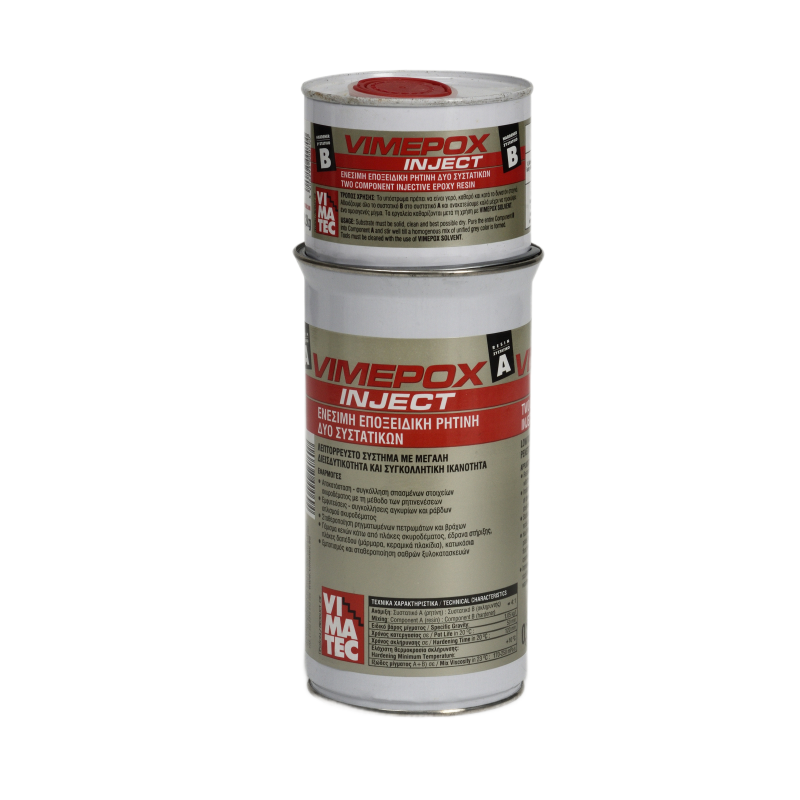 VIMATEC VIMEPOX INJECT – это двухкомпонентная низковязкая эпоксидная смола , специально разработанная для инъекций в трещины, поры и капилляры бетонных конструкций. Благодаря своей высокой проницаемости и прочности, продукт идеально подходит для герметизации трещин, восстановления монолитности и структурного укрепления .