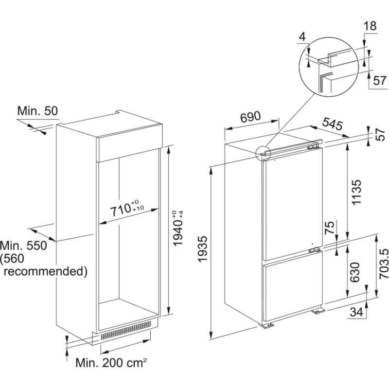 Встроенный комбинированный холодильник