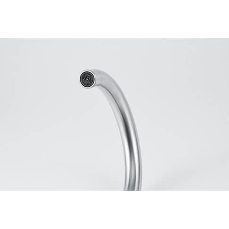 Смеситель с боковым размещение ручки управления. Имеет фиксированный излив, который не вытягивается. Ламинарный поток – легкий, тихий и прозрачный поток воды без разбрызгивания. Поток воды – 12 л/мин (3 бар)