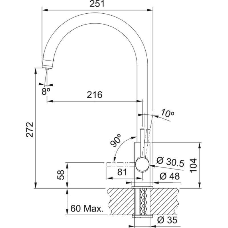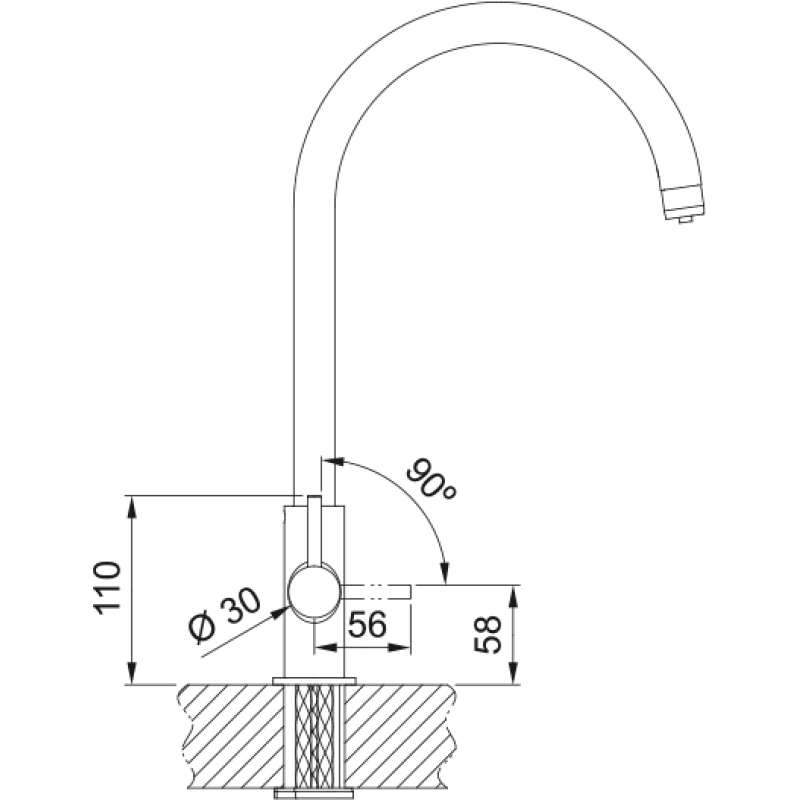 Кухонный смеситель с поворотным механизмом и нерегулируемым вращением и быстрым важелем в комплекте с фильтром для воды Кут поверните склад на 360°, чтобы водяной пот достиг больших размеров, а также такой смеситель можно перемещать в островную кухню. Дважды важно отвести угол на 90° вперед, чтобы можно было поднять его до упора.