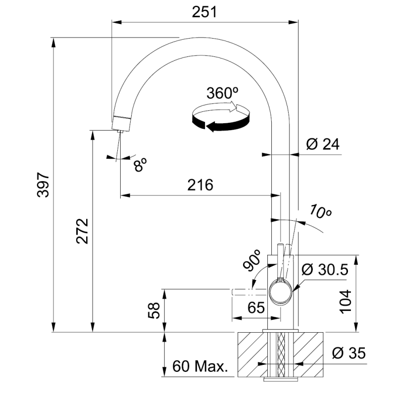Смесь с поворотным невитяжным вращением с подсоединением к системам фильтрации воды, в том числе с обратным осмосом Важнее отодвинуть вперед на угол 90°, чтобы можно было выполнить монтаж впритык к стенам. Когда вы поворачиваете склад на 360°, этот водяной потоот достигает больших размеров, а также такой смеситель можно установить в кухонную зону. Аэратор наполняет водяной потк посудомойкой, поэтому он может эффективно работать с водой, а также экономить воду.