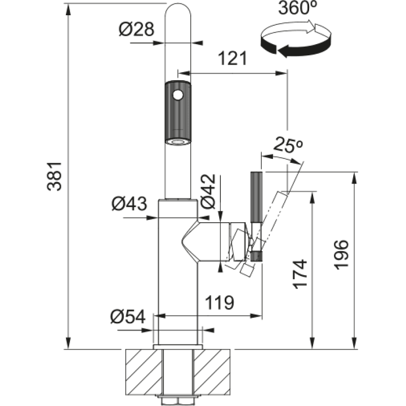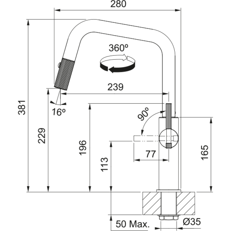 Змеишувач FRANKE Maris Stripes U, поворотный витяжний, черный матовый (115.0747.675)