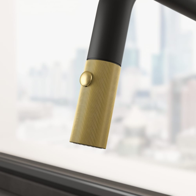 Змішувач FRANKE Maris Stripes U, поворотный витяжний, Bi-Matte Black/Gold (115.0747.676)