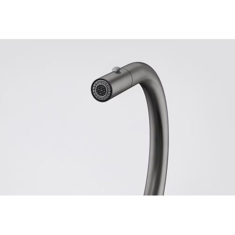 Смеситель с боковым размещением ручки управления Вытяжной излив с функцией пониженной температуры позволяет более бережно мыть фрукты, ягоды, зелень или салаты. Ламинарный поток – легкий, тихий и прозрачный поток воды без разбрызгивания.