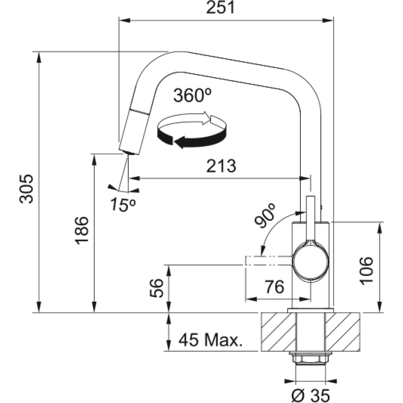 Кухонный смеситель с поворотным невытяжным виловым и бічним важелем керування Натяжной вилив дозируется вручную, мити всю поверхность мийки и наполняют посуду, которые расположены поперек межами. Важнее отодвинуть вперед на угол 90°, чтобы можно было выполнить монтаж впритык к стенам. Когда вы поворачиваете склад на 360°, этот водяной потоот достигает больших размеров, а также такой смеситель можно установить в кухонную зону. Аэратор наполняет водяной потк посудомойкой, поэтому он может эффективно работать с водой, а также экономить воду.