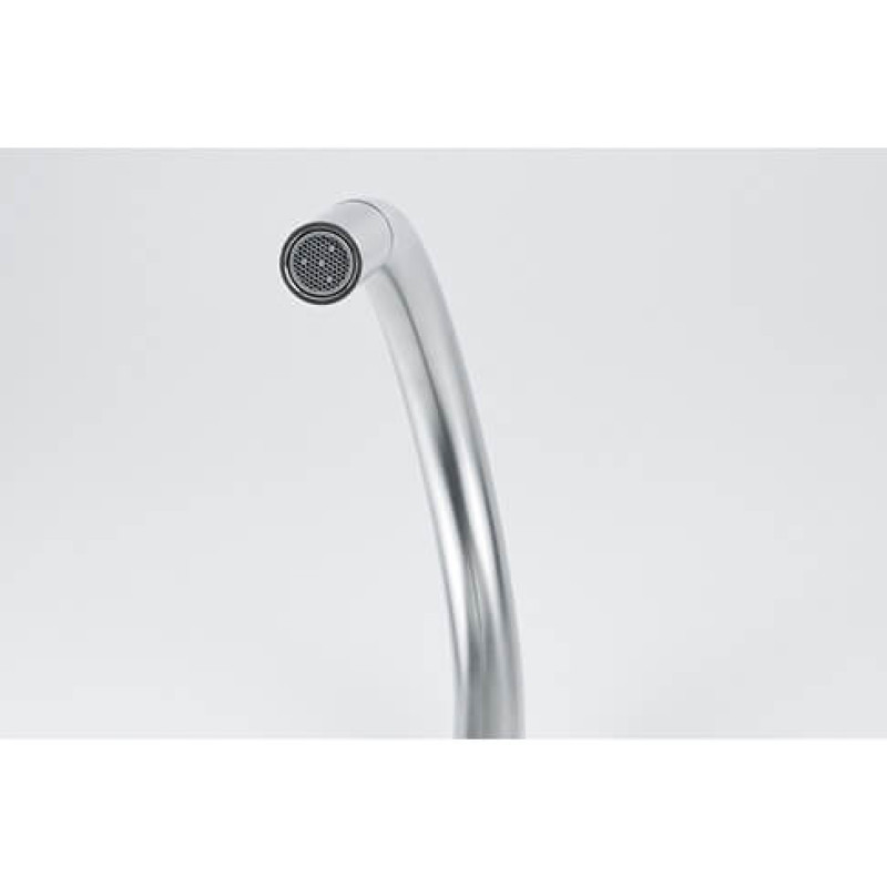 Смеситель с боковым размещение ручки управления. Вытяжной излив дает возможность наполнять емкости вне чаши мойки. Ламинарный поток – легкий, тихий и прозрачный поток воды без разбрызгивания. Поток воды – 8 л/мин (3 бар)