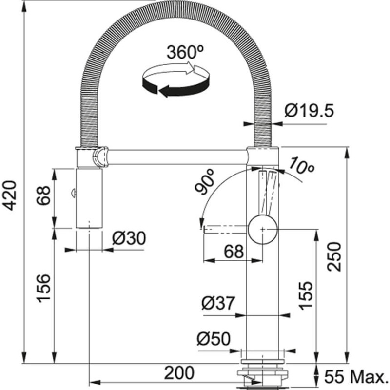_x000D__x000D__x000D_Тип смесителя_x000D_Выносной излив_x000D__x000D__x000D_Аэратор_x000D_съемный, многоуровневый, с системой экономии воды и уменьшением отложений налета_x000D__x000D__x000D_Картридж_x000D_керамический, ∅ 28 мм_x000D__x000D__x000D_Давление_x000D_высокое_x000D__x000D__x000D_Тип излива_x000D_поворотный, выносной армированный гибкий шланг_x000D__x000D__x000D_Тип подводки_x000D_гибкие шланги 530 мм_x000D__x000D__x000D_Длина излива_x000D_200 мм_x000D__x000D__x000D_Высота излива_x000D_156 мм_x000D__x000D__x000D_Угол вращения_x000D_360 °_x000D__x000D__x000D_Тип управления_x000D_один рычаг_x000D__x000D__x000D_Высота смесителя_x000D_420 мм_x000D__x000D__x000D_Монтажное отверстие_x000D_∅ 35 мм_x000D__x000D__x000D_Гарантия_x000D_2 года_x000D__x000D__x000D_Страна производителя_x000D_Италия_x000D__x000D__x000D_