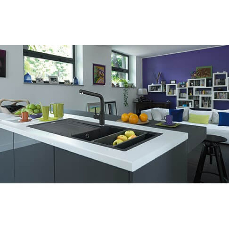 Смеситель с боковым размещение ручки управления. Вытяжной излив дает возможность наполнять емкости вне чаши мойки. Поток воды – 10 л/мин (3 бар)