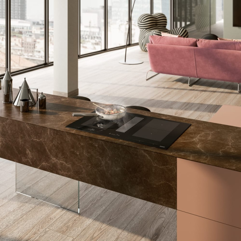Варильная поверхность с интегрированной вытяжкой предназначена для монтажа в периоды проведения мероприятий Оставаться с патрубком и без вентиляционных труб