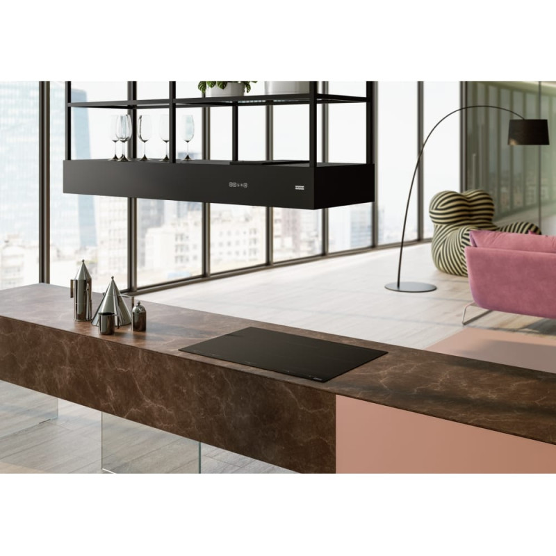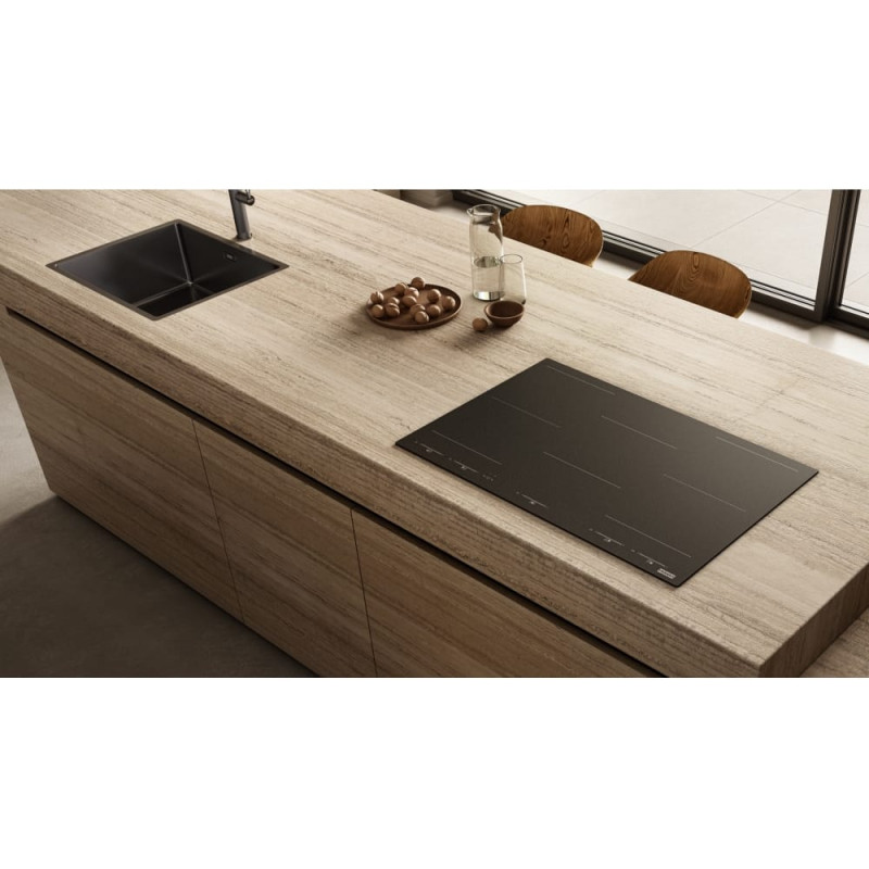 Основа варочной поверхности – инновационная, надземная стойка до подрябины к стеклу Eurokera Onyka Индукционная варочная поверхность с возможностью безремонтного управления витяжкой и пятью высокоэффективными прямыми зонами нагрева Flexi Технология K-Link дозирует возможность использования различной поверхности с повторяющейся вытяжкой и дозировкой, регулирующей скорость и режимы работы в стационарности от возможности повышения мощности во время приготовления.