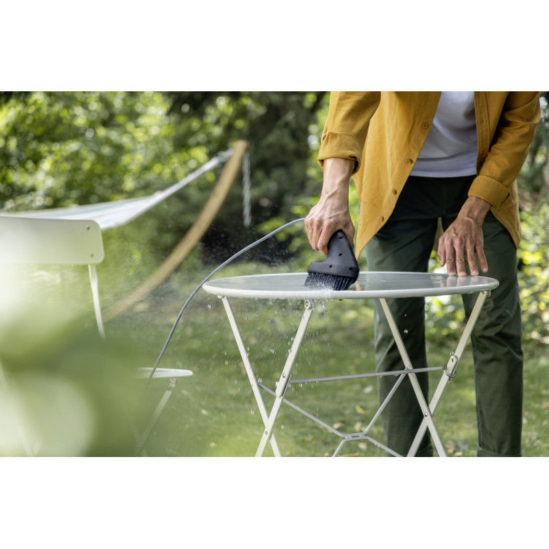 Доступно в течении 2-3 днейУниверсальная щетка прекрасно подходит для быстрого и тщательного удаления и смывания присохших отложений грязи или, например, клейкого налета, образованного на садовой мебели цветочной пыльцой. Воздействие струи воды под напором в сочетании с механической обработкой поверхности щетиной обеспечивает быструю промежуточную уборку с превосходным результатом. Такой щеткой можно также очищать, например, велосипеды и различное туристское снаряжение. Щетка устанавливается непосредственно на пистолете. Благодаря эргономичной форме рукоятки с противоскользящей профилированной вставкой щетка удобно лежит в руке и гарантирует работу без переутомления. Подача воды производится только при нажатом рычаге пистолета, что обеспечивает ее экономное использование, а также способствует сбережению заряда аккумулятора. Универсальная щетка совместима со всеми портативными мойками серии OC 3. Совместимая техника