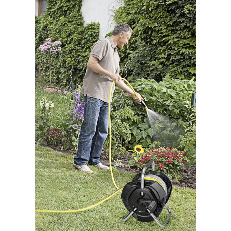 Доступно в течение 2-3 днейНастенная катушка для шланга HR 4.525 всегда готова к работе. В комплекте шланг PrimoFlex 25 метров диаметром 1/2". Наша удобная система хранения позволяет использовать шланг как для стационарного, так и для одноразового полива. Наша катушка имеет идеальный размер для малых и средних садов и может быть надежно размещена на неровной поверхности без каких-либо хлопот. Точно измеренное расстояние между шлангом и ножками катушки позволяет легко наматывать и разматывать шланг, обеспечивая постоянный уровень комфорта при каждом использовании. В комплекте: настенный кронштейн, шланг 1/2" (25 м), распылитель для полива, 3 коннектора, 1 коннектор с функцией «Aqua Stop» и штуцер для присоединения к крану G3/4 с переходником G1/2. Все тележки и катушки Kärcher совместимы с распространенными на рынке системами соединения.