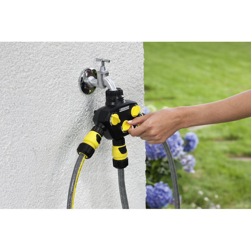 Доступно в течение 2-3 днейВысококачественный 3-канальный распределитель со штуцером для присоединения к крану G1 и переходником G3/4 для одновременного полива с помощью трех шлангов. 3-канальный распределитель оснащен тремя штуцерами для подсоединения к крану с тремя независимыми бесступенчатыми регуляторами и характеризуется оптимизированным расходом воды. Он подходит для использования в сочетании с любыми стандартными садовыми шлангами и подкупает надежным качеством, эргономичной конструкцией и простым и комфортным обращением. Накидная гайка с прочной внутренней резьбой гарантирует легкую и удобную фиксацию на водопроводном кране. 3-канальный распределитель совместим с большинством стандартных систем стыкового соединения.