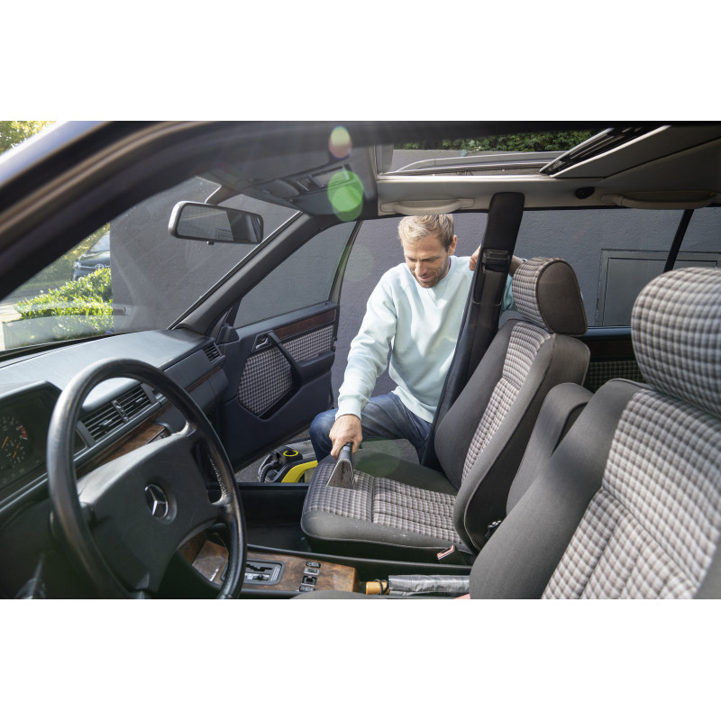 Доступно в течение 2-3 днейТщательная уборка с максимальной свободой движений: моющий пылесос SE 3-18 Compact очищает текстильную обивку на всю глубину ворса, удаляя из него все загрязнения. Аппарат имеет компактную конструкцию и благодаря питанию от аккумулятора Kärcher Battery Power 18 В (не входит в комплект поставки) может использоваться в местах, где нет возможности подключиться электросети. Для уборки с его помощью в автомобиле достаточно 12 – 24 минут. За это время можно полностью очистить сиденья, коврики, а также и багажник. Аппарат, не уступающий в производительности сетевым моющим пылесосам, прекрасно подходит и для очистки мягкой мебели (в т. ч. садовой). При этом его длинный и эластичный шланг с интегрированной подводкой воды обеспечивает удобную очистку труднодоступных мест. Моющий пылесос впечатляет и гигиенической функцией промывки, позволяющей после уборки удалять из него и шланга остаточные загрязнения, предотвращая тем самым размножение бактерий и образование неприятного запаха.