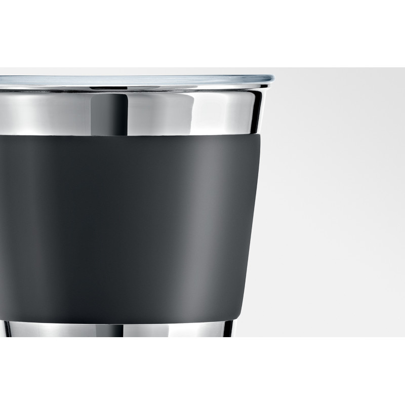 Його відрізняють чіткі та строгі лінії, продумані ознаки на візуальному й тактильному рівні, а також ретельно підібрані матеріали, які в свою чергу значно спрощує принцип використання та гарантує оптимальну гігієнічність при приготуванні чарівної молочної піни. Спінювач молока має дві насадки й готує молоко або молочну піну в холодному, теплому або гарячому виді за єдиним натисканням кнопки управління.
