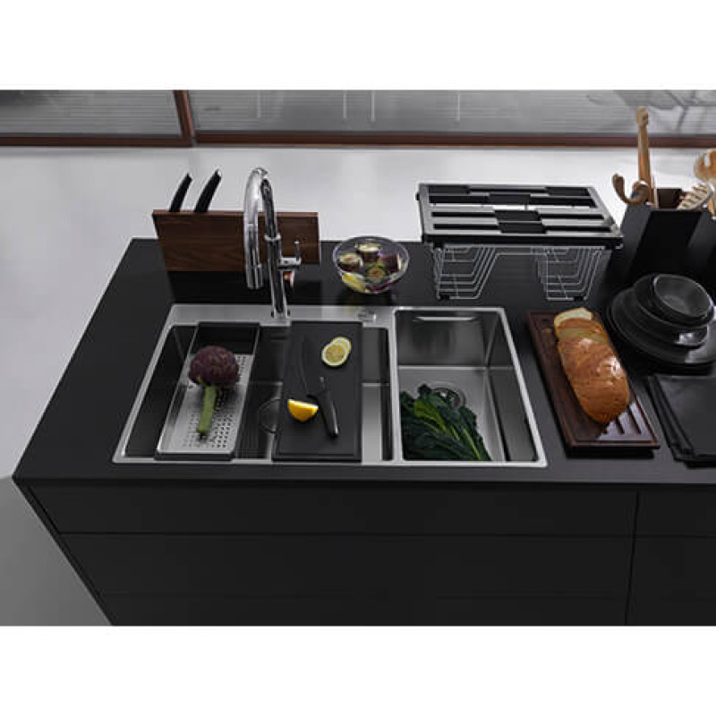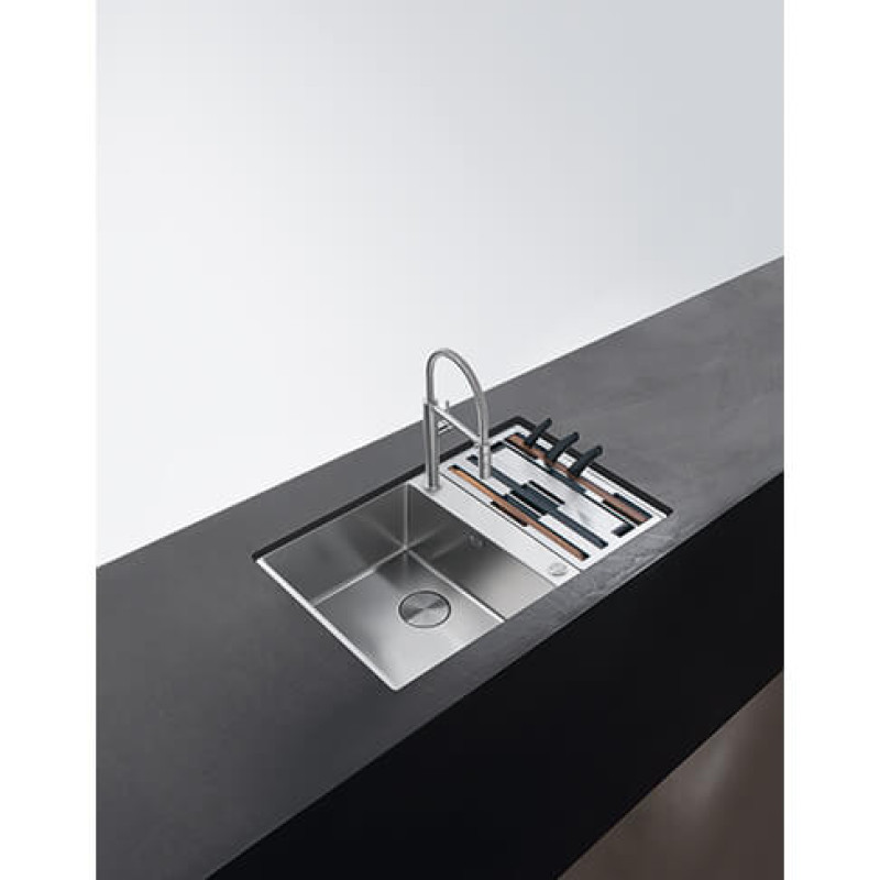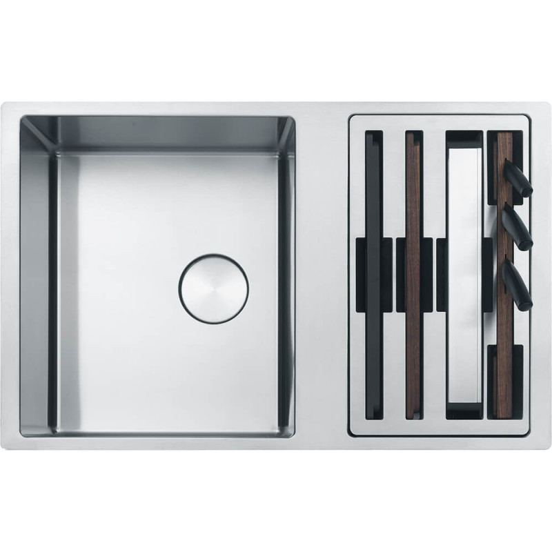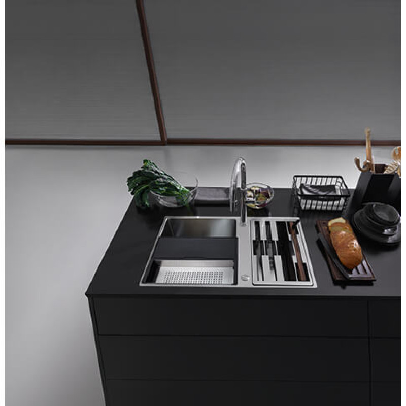 Мийки Box Center BWX 120-41-27 спроектовані для монтажу під стільницю. Це дозволяє встановити чашу з аксесуарами як на праву, так і на ліву сторону. Для коректної інсталяції миття необхідно дотримуватись розмірів, вказаних в інструкції з монтажу, щоб забезпечити достатні габарити отвору для встановлення аксесуарів. Аксесуари встановлюються край миття. При недостатньому вирізі аксесуари одним краєм буде встановлено на стільниці.