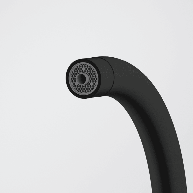 Змішувач з поворотним невитяжним виливом з підand#8217;єднанням до системи фільтрації води, в тому числі зі зворотним осмосом. Важіль відкривається вперед на кут 90°, тому можна здійснювати монтаж впритул до стіни. Кут повороту виливу складає, 360° тому водяний потік досягає більшої площі мийки, а також такий змішувач можна монтувати в острівні кухні. Аератор насичує водяний потік повітрям, завдяки чому краще працюють миючі засоби а також економиться вода.